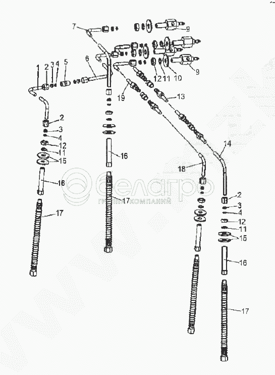 Каталог запасных частей к технике: МЗКТ-93782. Установка трубопроводов накачки шин правых колес
