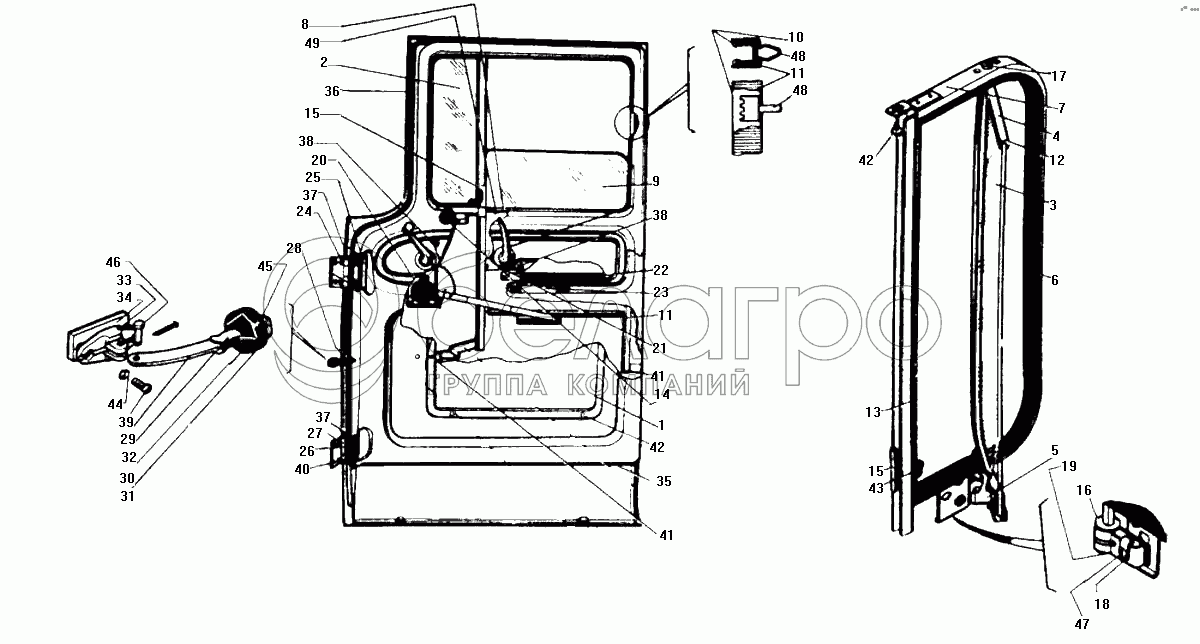 Каталог запасных частей к технике: ЗИЛ-130. Дверь кабины, навески и стекла двери
