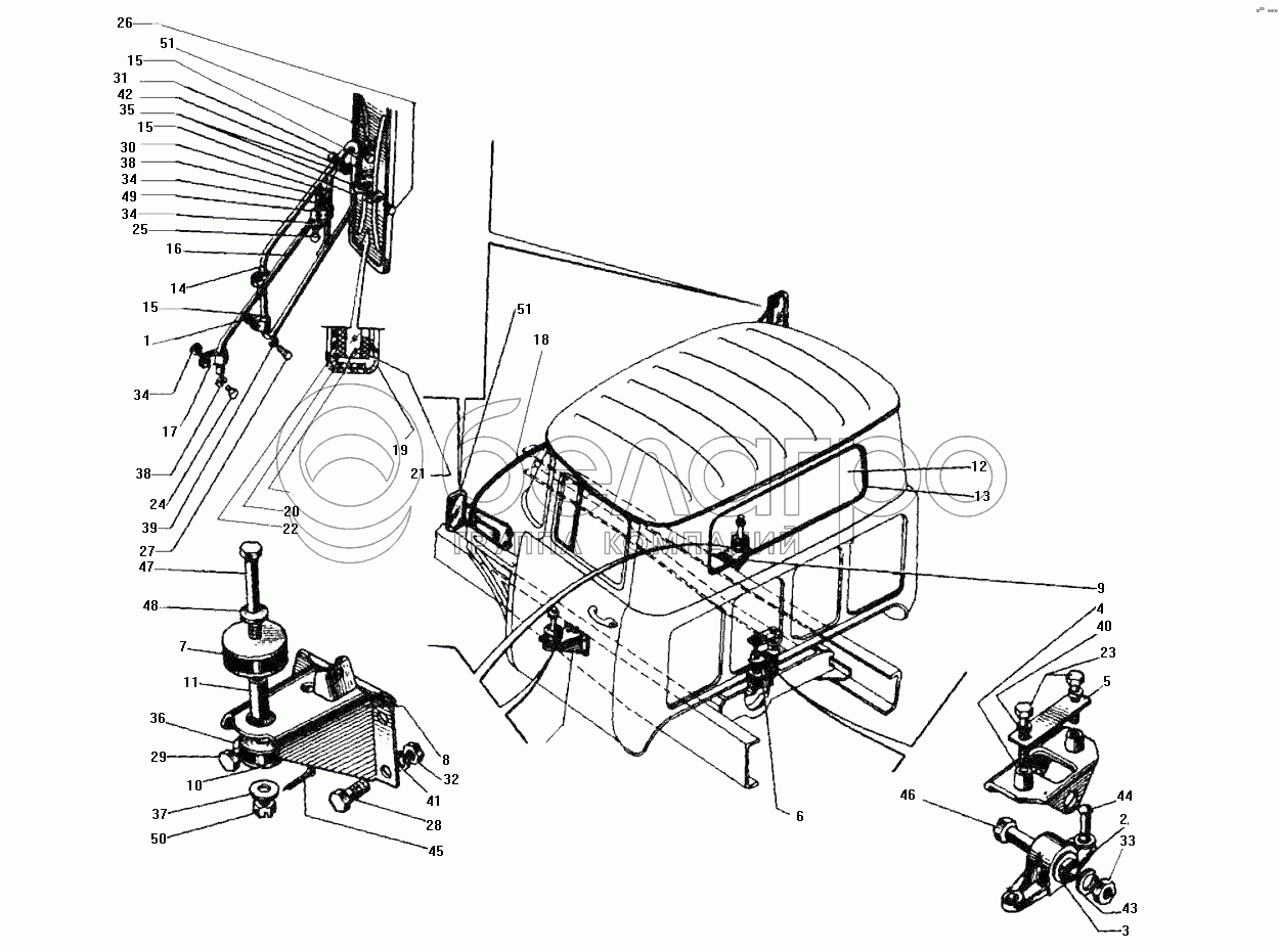 Кронштейн среднего крепления кабины к раме правый в сборе