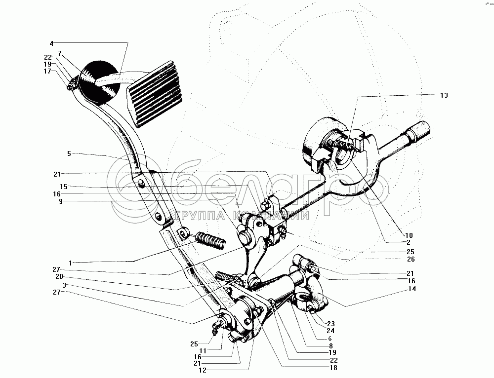 Каталог запасных частей к технике: ЗИЛ-130. Педаль и привод выключения сцепления