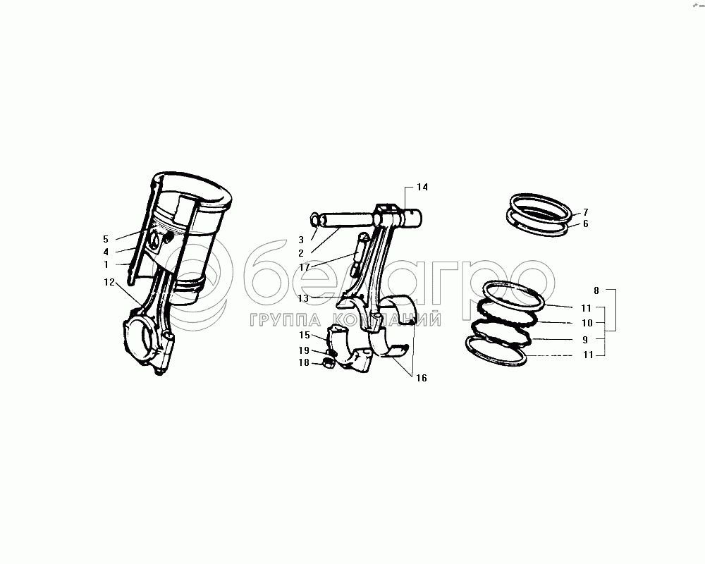 Комплект гильзы и деталей поршневой группы на один цилиндр