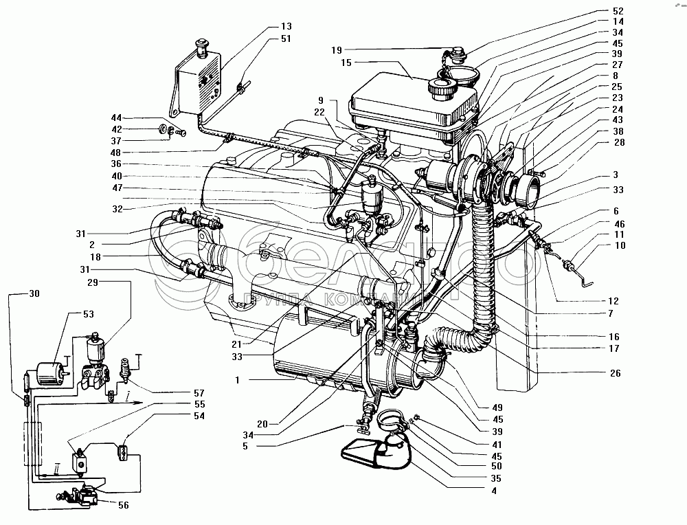Схема питания двигателя автомобилей ЗИЛ-130, ЗИЛ-130Д1, ЗИЛ-130Е, ЗИЛ-130Г