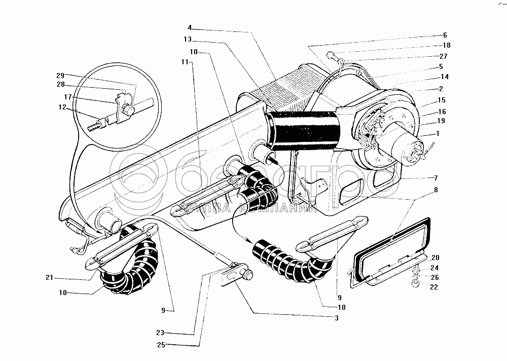 Каталог запасных частей к технике: ЗИЛ-130. Схема отопления и вентиляции кабины