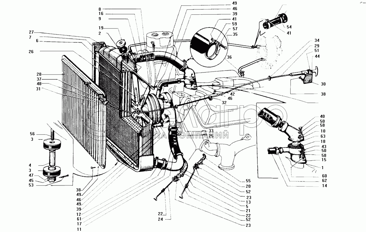 Каталог запасных частей к технике: ЗИЛ-130. Система охлаждения двигателя