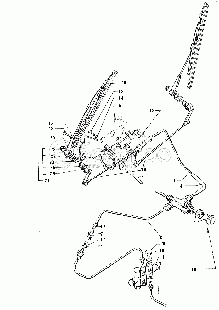 Каталог запасных частей к технике: ЗИЛ-130. Установка стеклоочистителя