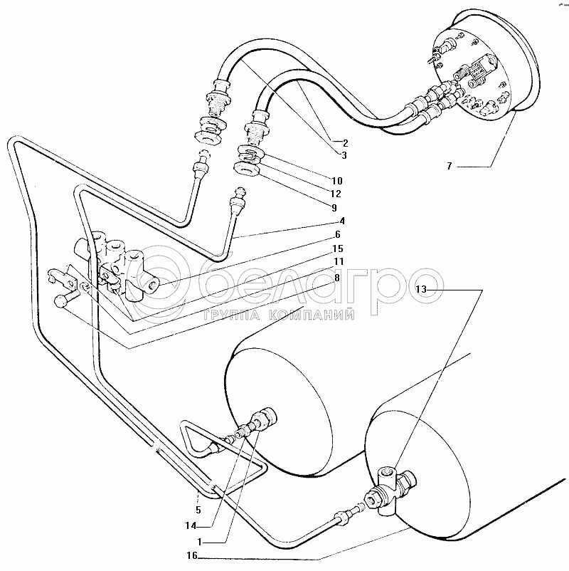 Каталог запасных частей к технике: ЗИЛ-130. Установка трубопроводов к манометрам воздуха