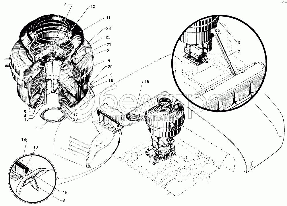Каталог запасных частей к технике: ЗИЛ-130. Воздушный фильтр ВМ-16 и его установка