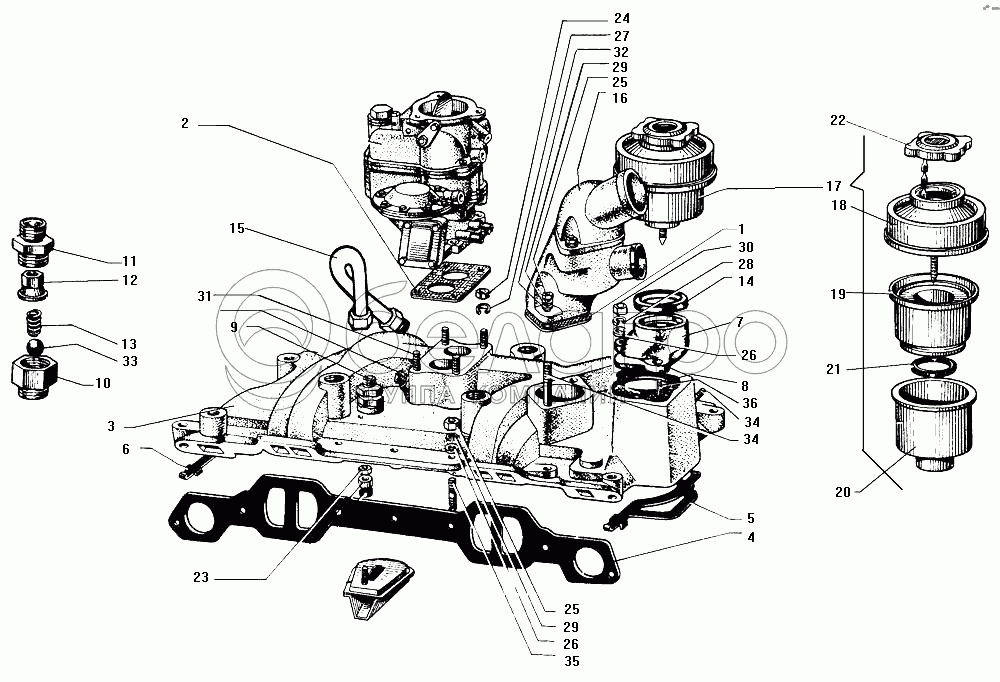 Каталог запасных частей к технике: ЗИЛ-130. Впускной газопровод, вентиляция картера