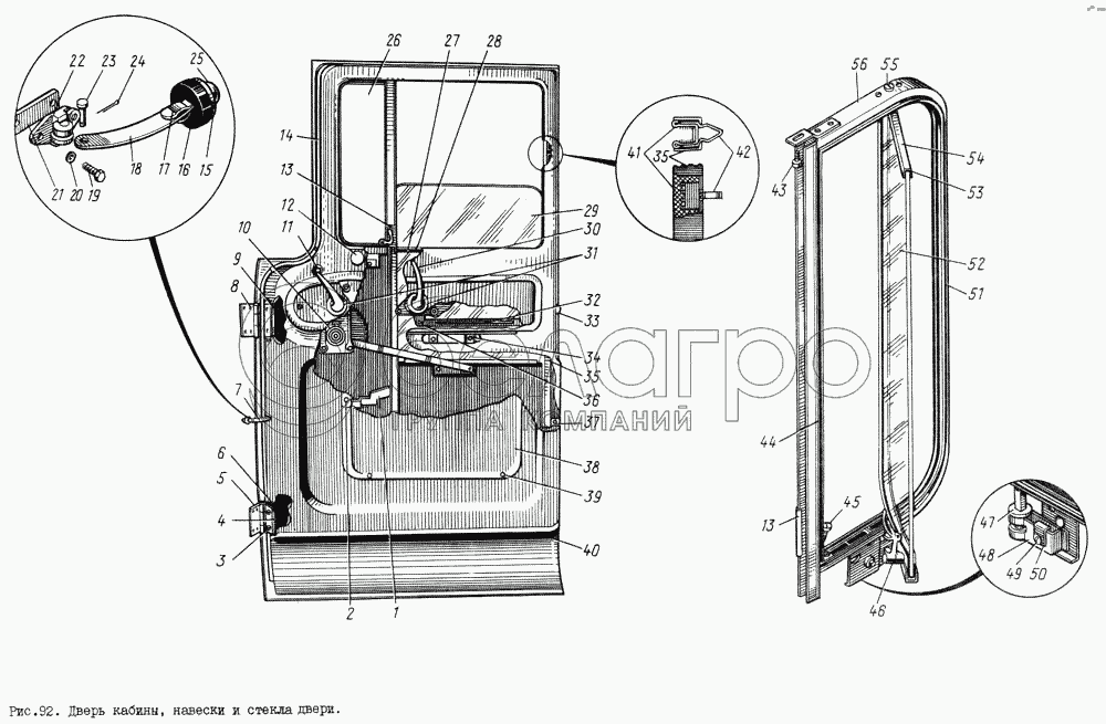 Рамка стекла форточки правой двери кабины в сборе