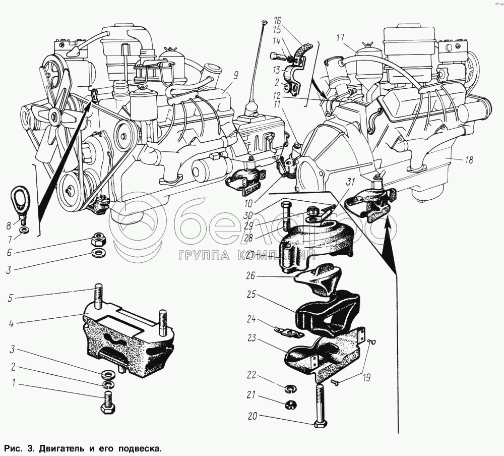 Каталог запасных частей к технике: ЗИЛ-131. Двигатель и его подвеска