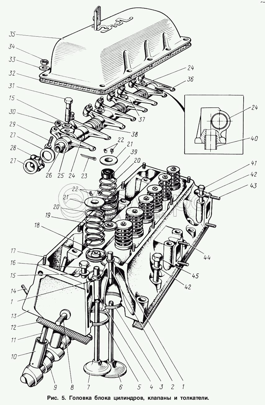 Каталог запасных частей к технике: ЗИЛ-131. Головка блока цилиндров, клапаны и толкатели