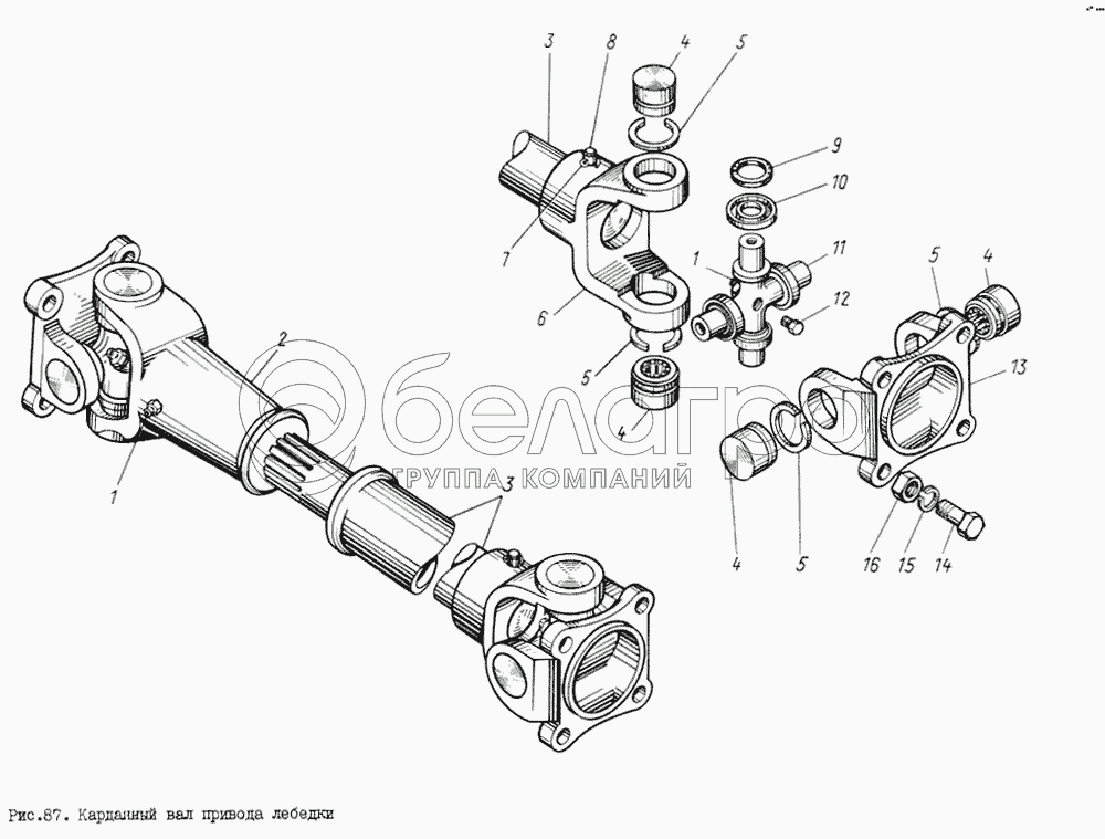 Каталог запасных частей к технике: ЗИЛ-131. Карданный вал привода лебедки