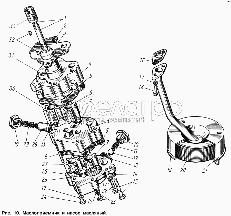 Каталог запасных частей к технике: ЗИЛ-131. Маслоприемник и насос масляный