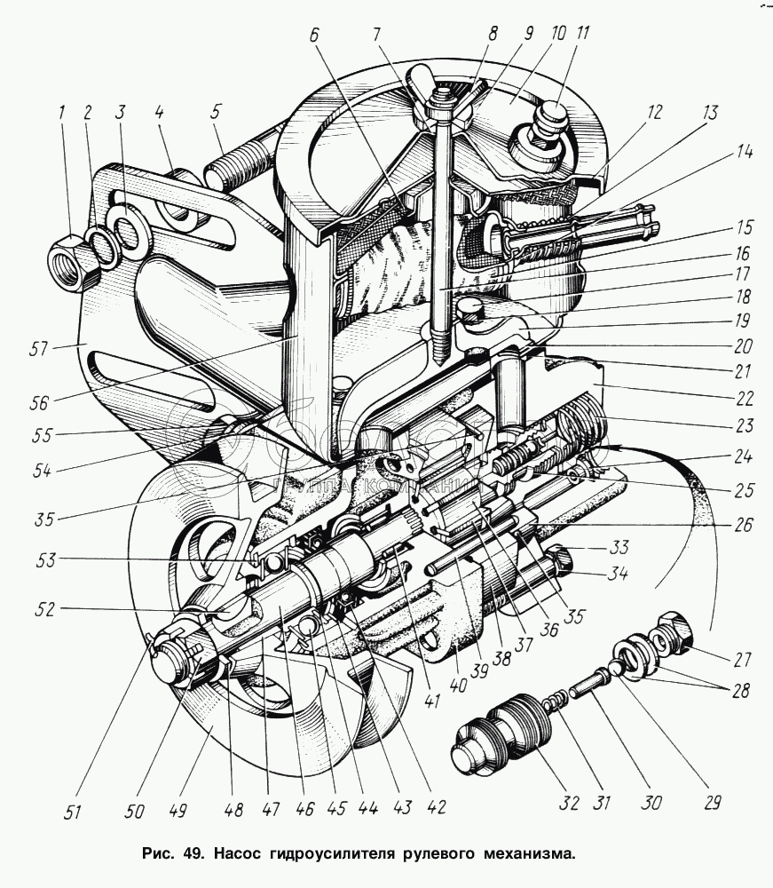 Каталог запасных частей к технике: ЗИЛ-131. Насос гидроусилителя рулевого механизм