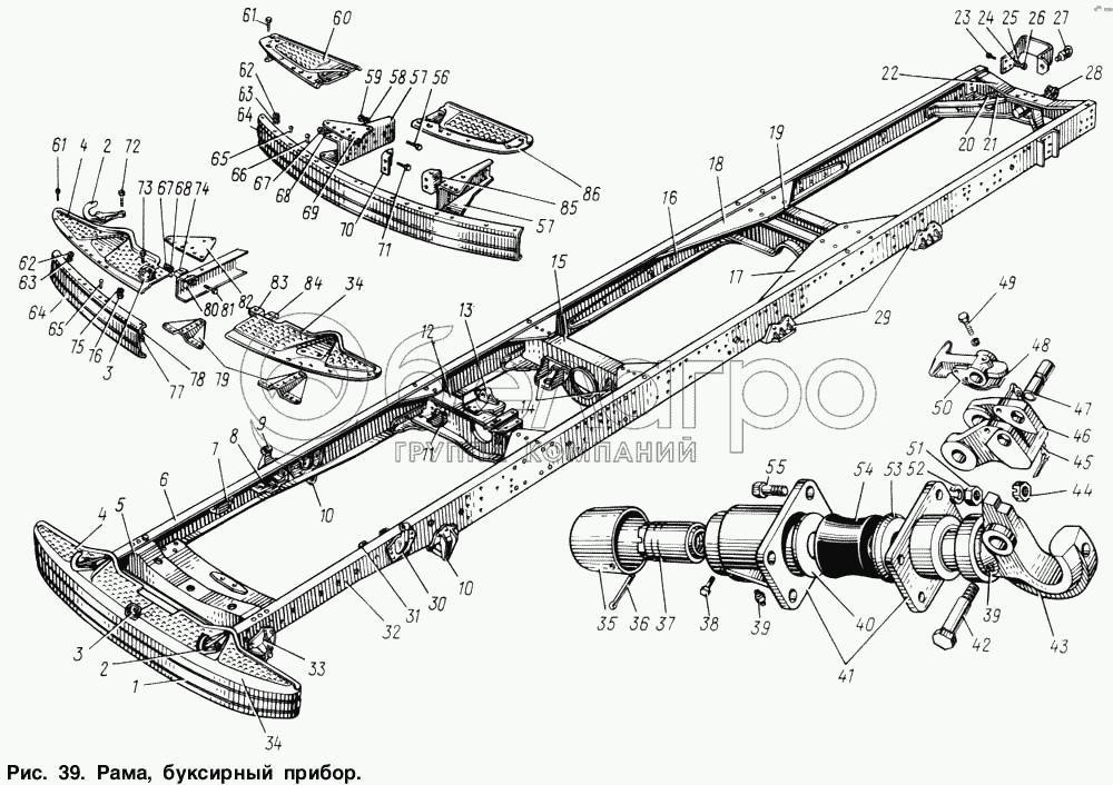Каталог запасных частей к технике: ЗИЛ-131. Рама, буксирный прибор