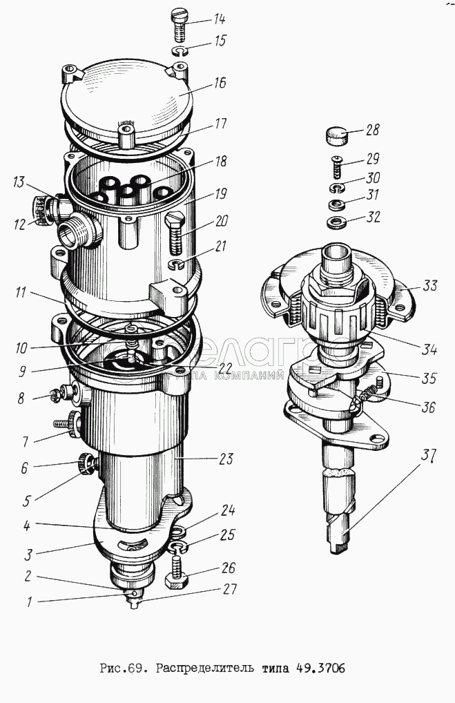 Каталог запасных частей к технике: ЗИЛ-131. Распределитель типа 49.3706