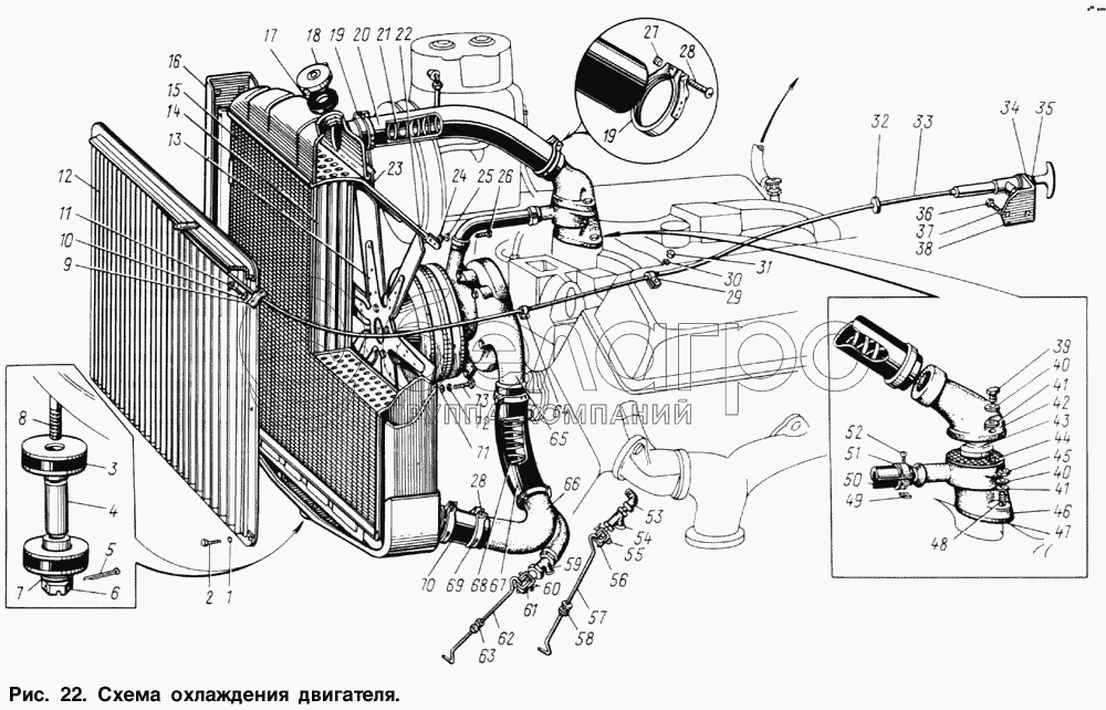 Каталог запасных частей к технике: ЗИЛ-131. Схема охлаждения двигателя