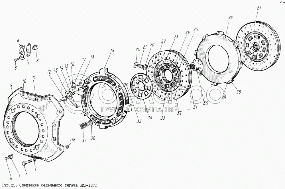 Каталог запасных частей к технике: ЗИЛ-131. Сцепление седельного тягача ЗИЛ-137Т