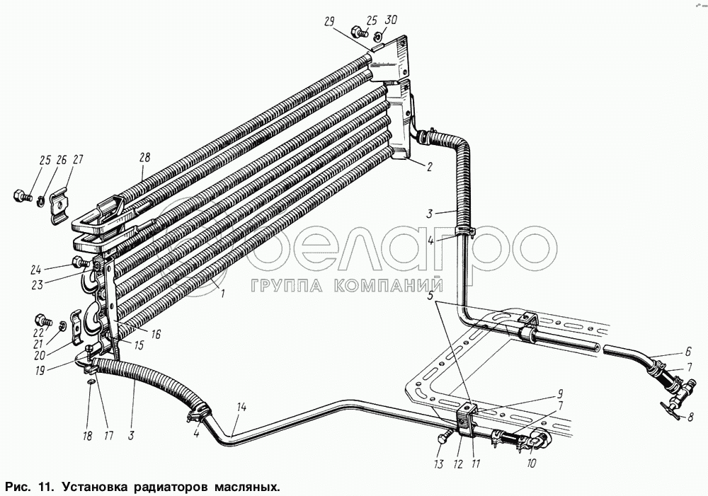 Каталог запасных частей к технике: ЗИЛ-131. Установка радиаторов масляных