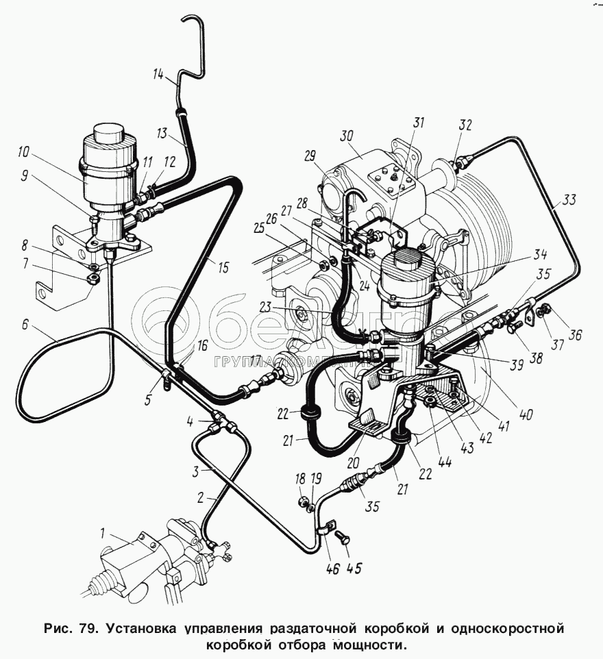 Каталог запасных частей к технике: ЗИЛ-131. Установка управления раздаточной коробкой