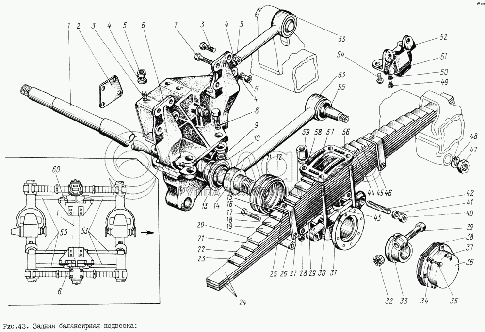 Каталог запасных частей к технике: ЗИЛ-131. Задняя балансирная подвеска