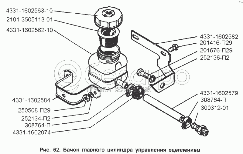 Каталог запасных частей к технике: ЗИЛ-133Д42. Бачок главного цилиндра управления сцеплением