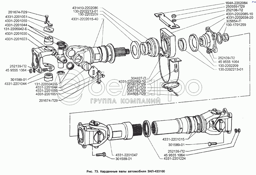 Каталог запасных частей к технике: ЗИЛ-133Д42. Карданные валы автомобиля ЗИЛ-433100