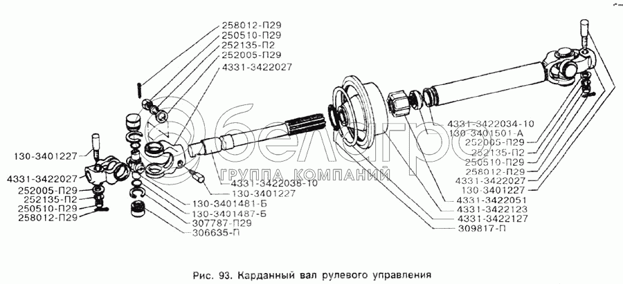 Каталог запасных частей к технике: ЗИЛ-133Д42. Карданный вал рулевого управления
