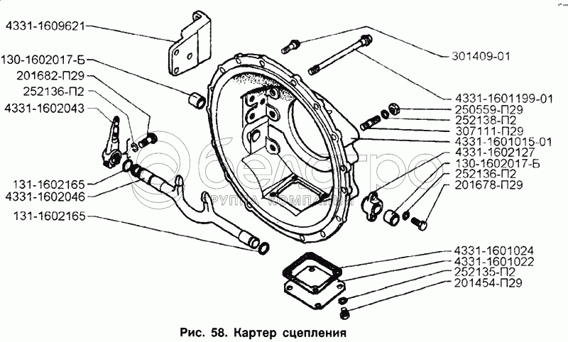 Каталог запасных частей к технике: ЗИЛ-133Д42. Картер сцепления
