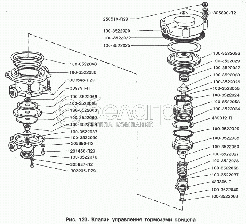 Каталог запасных частей к технике: ЗИЛ-133Д42. Клапан управления тормозами прицепа