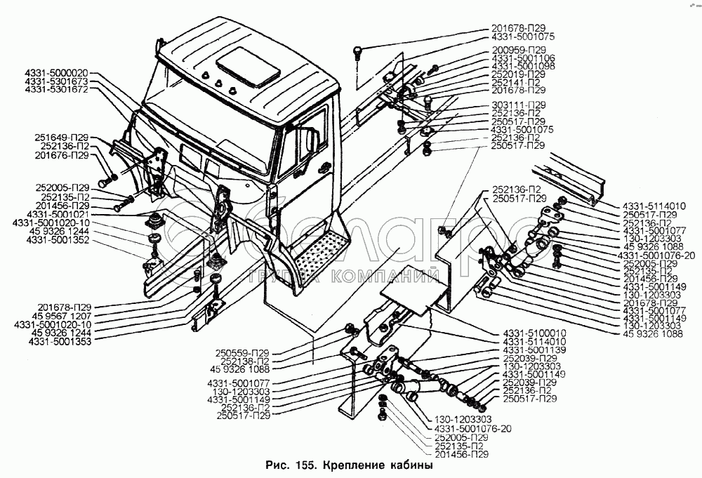 Каталог запасных частей к технике: ЗИЛ-133Д42. Крепление кабины