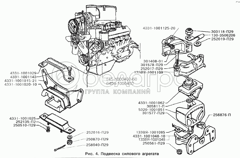 Каталог запасных частей к технике: ЗИЛ-133Д42. Подвеска силового агрегата