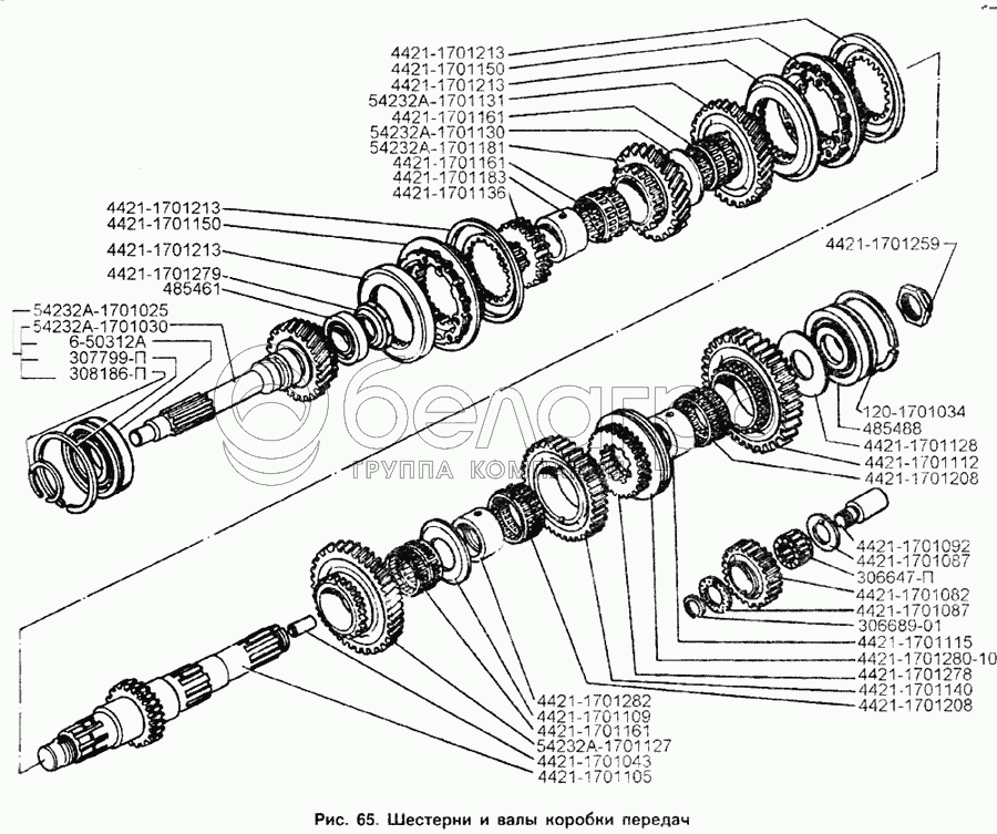 Каталог запасных частей к технике: ЗИЛ-133Д42. Шестерни и валы коробки передач