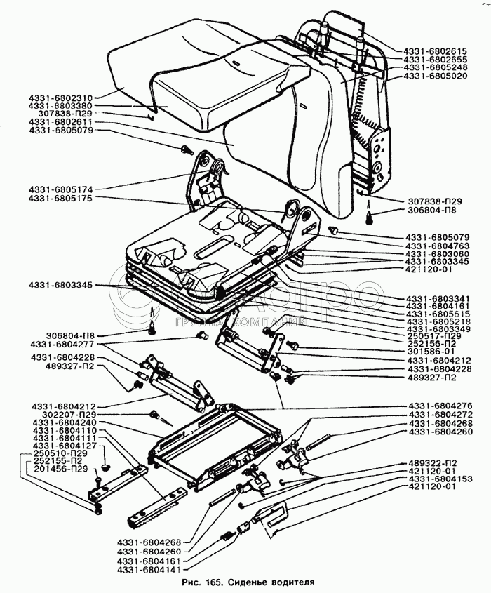 Каталог запасных частей к технике: ЗИЛ-133Д42. Сиденье водителя