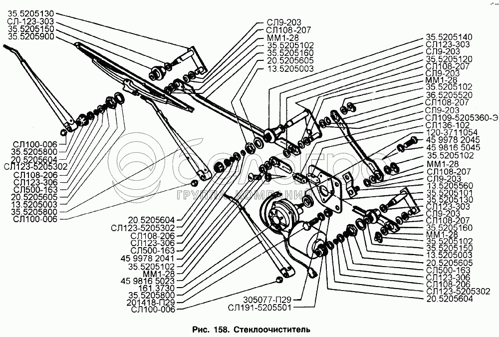 Каталог запасных частей к технике: ЗИЛ-133Д42. Стеклоочиститель