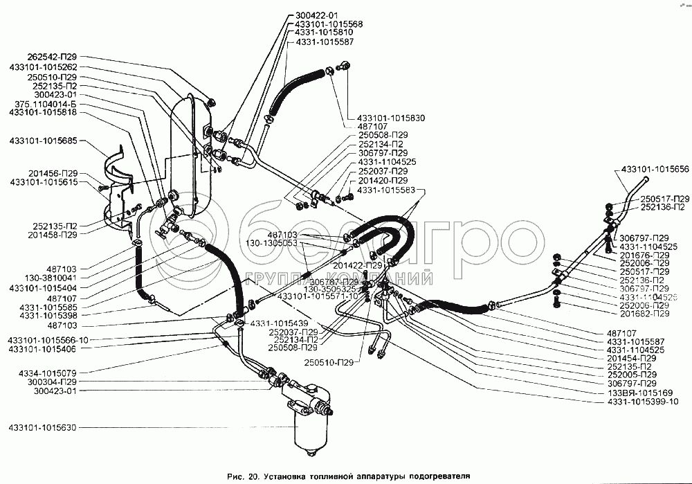 Каталог запасных частей к технике: ЗИЛ-133Д42. Установка топливной аппаратуры подогревателя