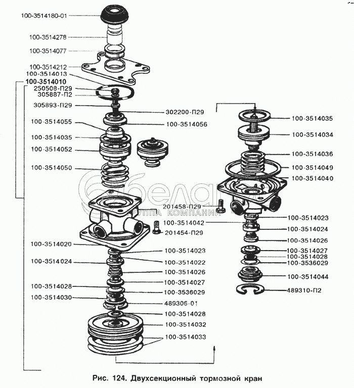 Каталог запасных частей к технике: ЗИЛ-133Г40. Двухсекционный тормозной кран