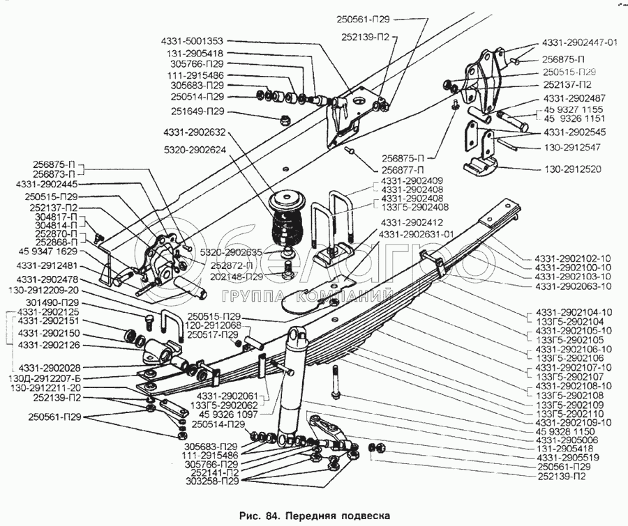 Каталог запасных частей к технике: ЗИЛ-133Г40. Передняя подвеска