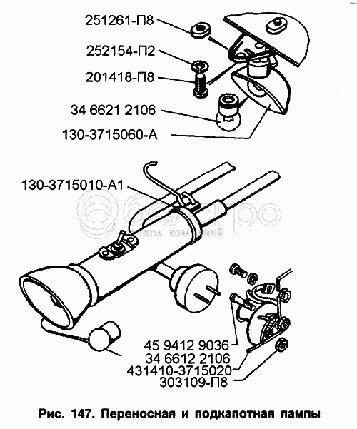Каталог запасных частей к технике: ЗИЛ-133Г40. Переносная и подкапотная лампы