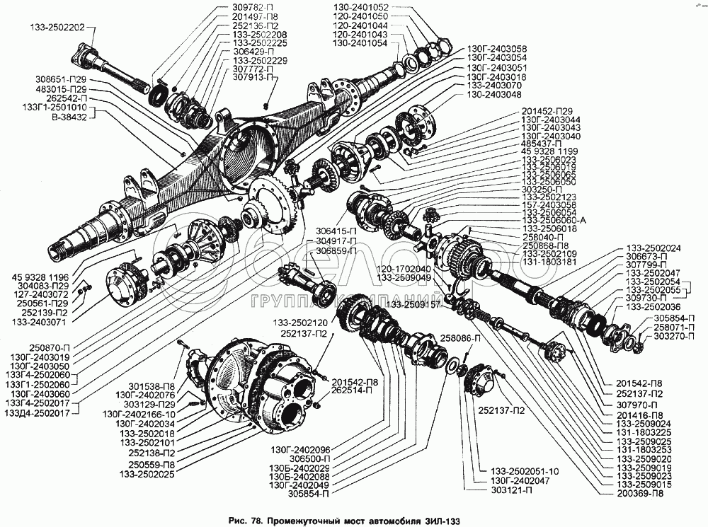 Каталог запасных частей к технике: ЗИЛ-133Г40. Промежуточный мост автомобиля ЗИЛ-133