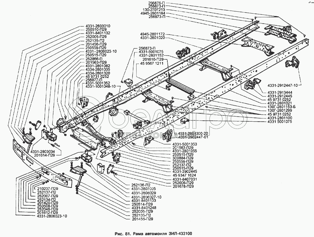 Каталог запасных частей к технике: ЗИЛ-133Г40. Рама автомобиля ЗИЛ-433100