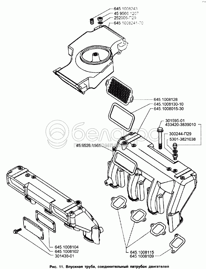 Каталог запасных частей к технике: ЗИЛ-133Г40. Впускная труба, соединительный патрубок двигателей