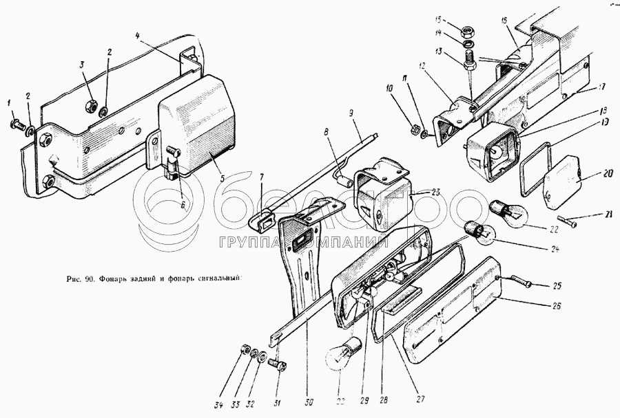 Каталог запасных частей к технике: ЗИЛ-133ГЯ. Фонарь задний и фонарь сигнальный