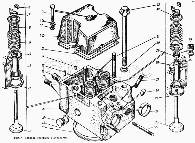 Каталог запасных частей к технике: ЗИЛ-133ГЯ. Головка цилиндра с клапанами