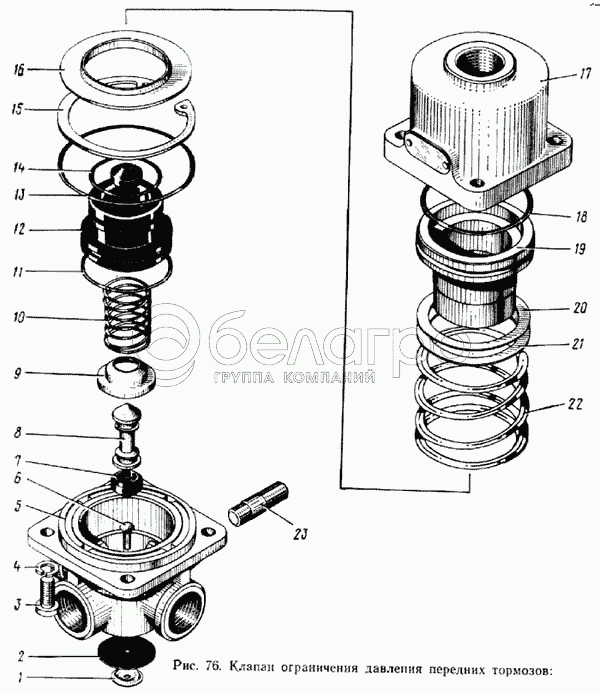 Каталог запасных частей к технике: ЗИЛ-133ГЯ. Клапан ограничения давления передних тормозов