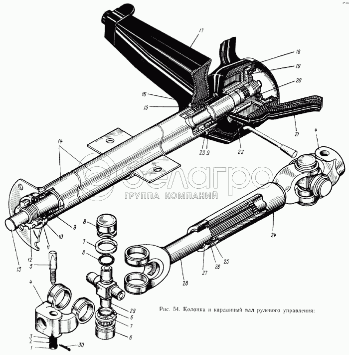 Каталог запасных частей к технике: ЗИЛ-133ГЯ. Колонка и карданный вал рулевого управления