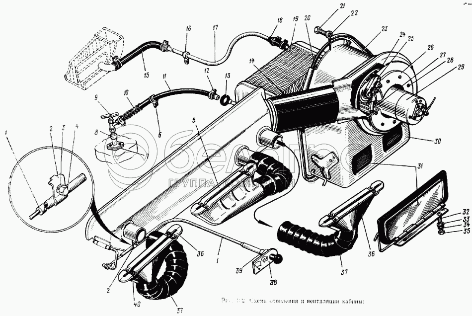 Каталог запасных частей к технике: ЗИЛ-133ГЯ. Схема отопления и вентиляции кабины