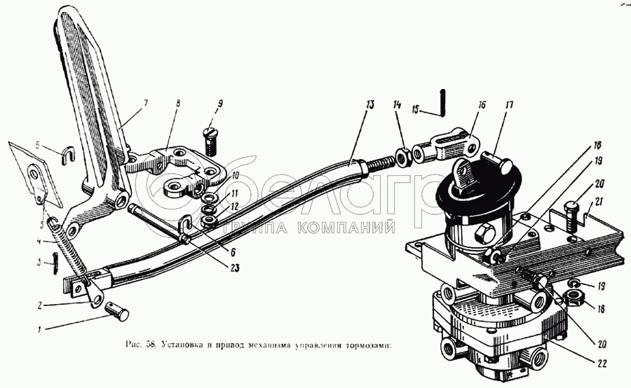 Каталог запасных частей к технике: ЗИЛ-133ГЯ. Установка и привод механизма управления тормозами