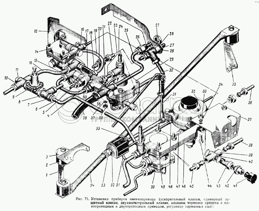 Трубка от двух магистрального клапана к пружинным энергоаккумуляторам заднего моста