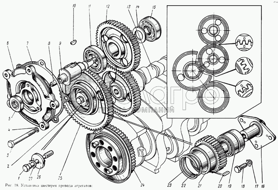 Каталог запасных частей к технике: ЗИЛ-133ГЯ. Установка шестерен привода агрегатов
